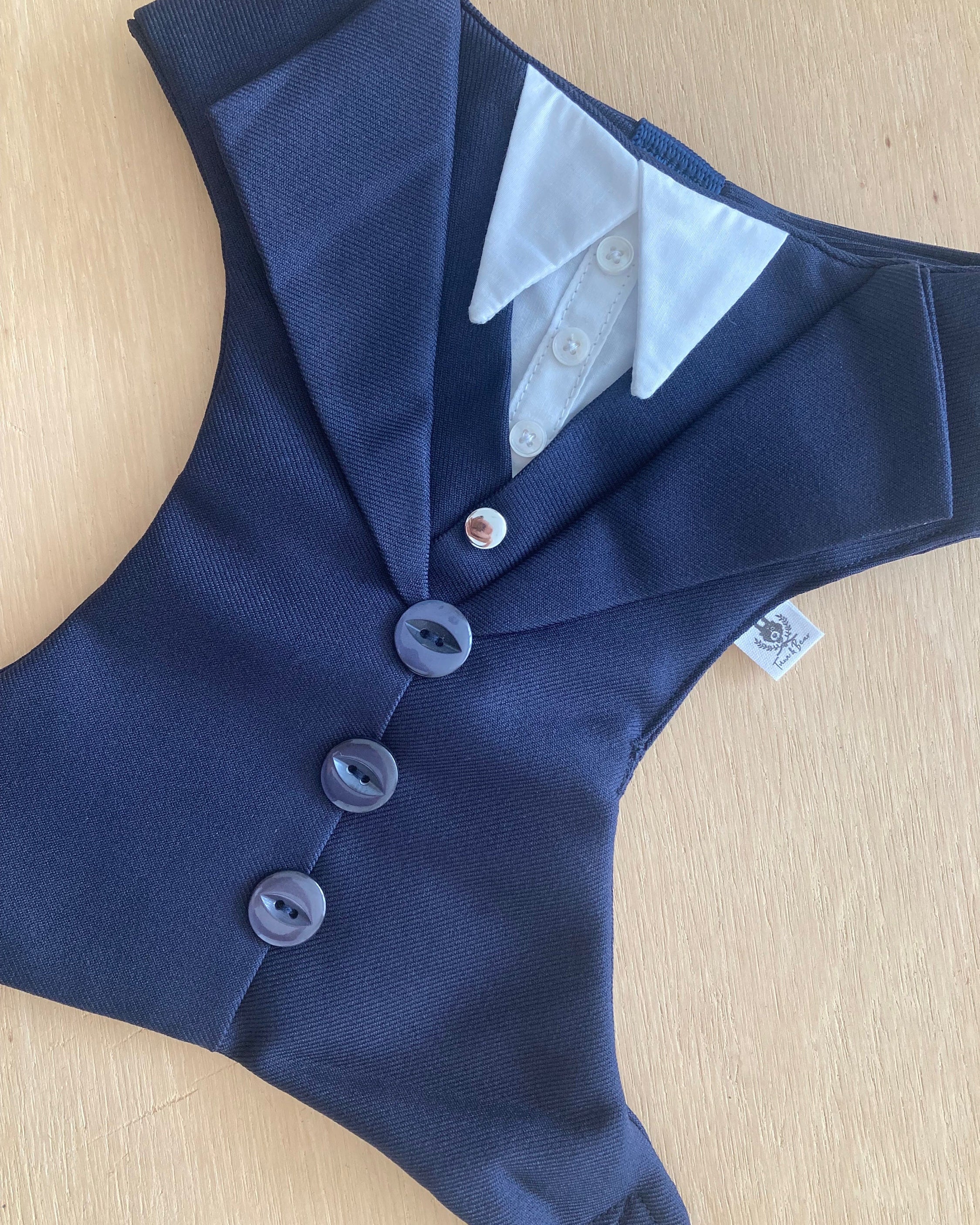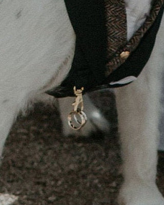 The ring bearer attachment is a little clip I attach to the outside of the jacket to enable your dog to carry the rings.